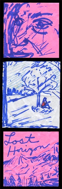 When at work I have a thirty minute lunch break. While the weather is warm, I usually spend the time at a special spot beneath a tree. There I have a perfect view of the cars on the bypass. For me the trick is to see how to maximize this short time. After eating lunch I am usually able to collect fifteen minutes of solitude. In my mind, I am often able to drift to foreign places. At times I try to recapture my break experience through drawings of the places I have imagined. Below are some of the drawings inspired by this break. The top portrait involved testing out a marker, the middle drawing is a kind of self portrait (myself under the tree), the bottom drawing is an imagined landscape. What I enjoy about making these little pictures is the roughness of the marker and the direct feeling of moving from thought to image.